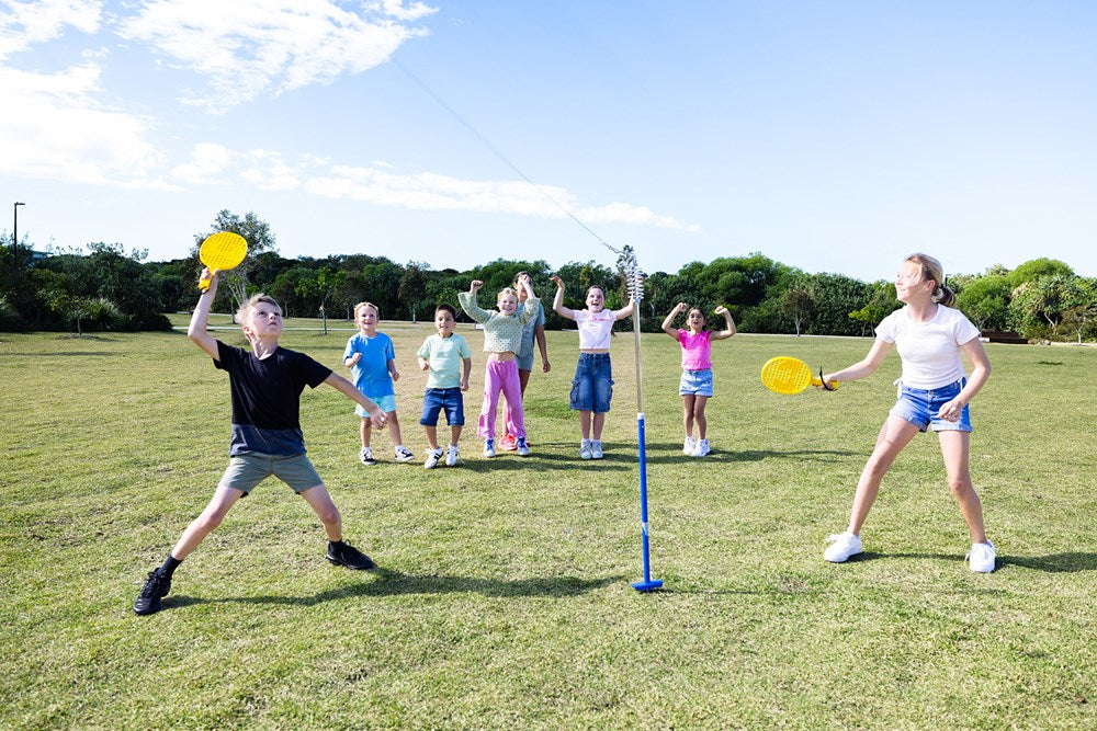 We're bringing back the classics with Swing Tennis – the ultimate backyard game for all ages! Simply set it up in seconds and get ready for endless fun with a sturdy, ground-secure pole, an adjustable 2-piece pole (152-167cm) to suit all player heights, and Cooee-designed paddles featuring hands inside the racquet for a unique touch. The durable tennis ball attached by a resilient cord keeps the game going for non-stop action! Comes with: